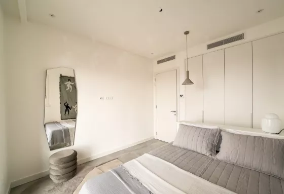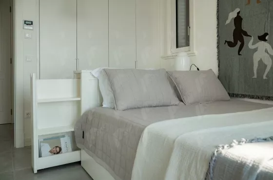 Продуманная планировка включает в себя просторную спальню с большой двойной кроватью, которая позволяет комфортно разместить даже ребенка рядом с родителями.