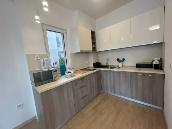 Новый комплекс в Донье Ластве из 4 домов по 5 этажей на закрытой территории с потрясающим видом на Тиватский залив! Квартира с двумя спальнями, площадью 66 м2 на 5 этаже. В стоимость входит парковочное место.